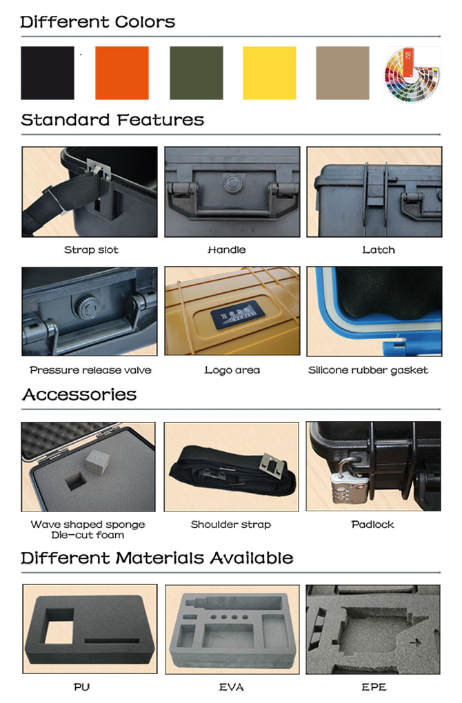 7:In the season with high temperature and high humidity, in order to avoid too high temperature in the case, do not put the equipment case to any place exposed to the scorching sun or where high heat is generated.