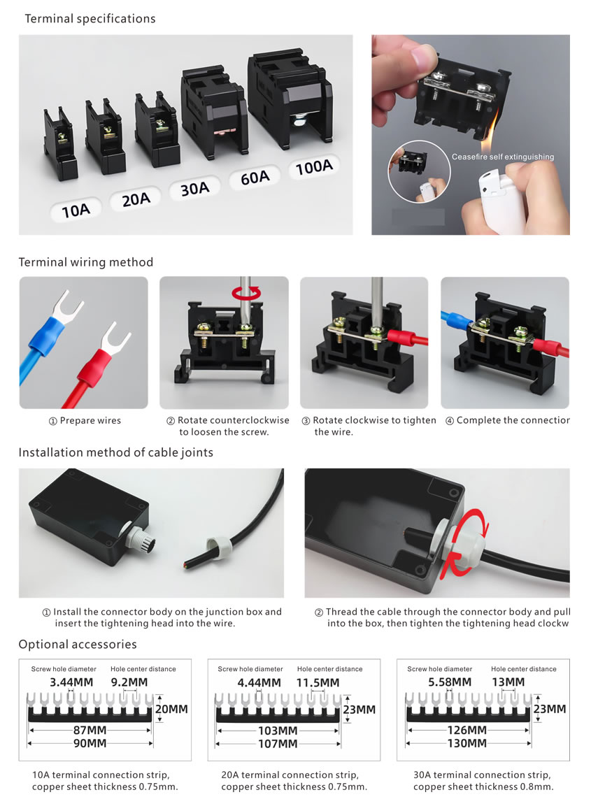 Terminal number, cable connector specifications and quantity can be customized. Both can be arbitrarily mixed.