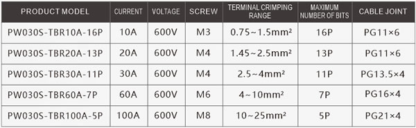 Terminal current: 10A、20A、30A、60A、100A
