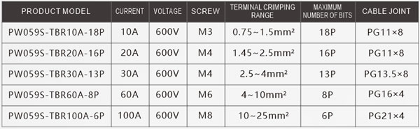 Terminal current: 10A、20A、30A、60A、100A