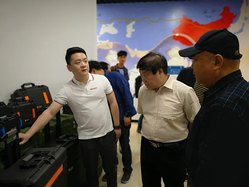 (董事长刘炎向摄影协会领导介绍公司产品安全防护箱)