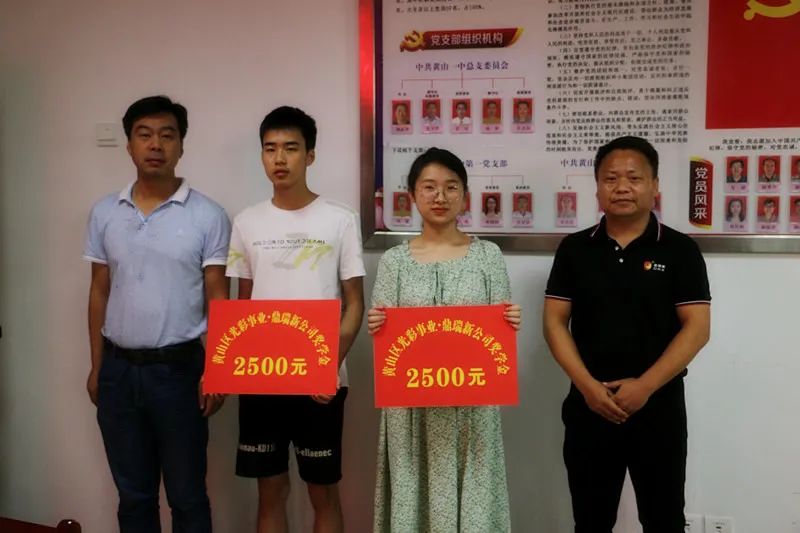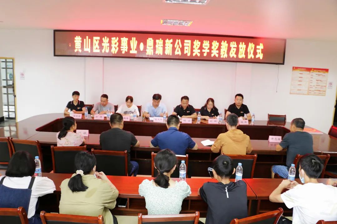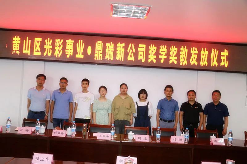 2021年8月27日,黄山鼎瑞新实业有限公司再次通过黄山区光彩事业定向对黄山一中捐资奖学奖教。公司出资2万元,奖励2021年黄山一中高考应届毕业生文科前两名、理科前两名各2500元,奖励高三文理科教师各1人,均5000元。区委统战部常务副部长孟风华、黄山鼎瑞新实业有限公司副总经理胡宏、黄山一中校长胡武烽、受奖励的教师与学生等出席了活动。