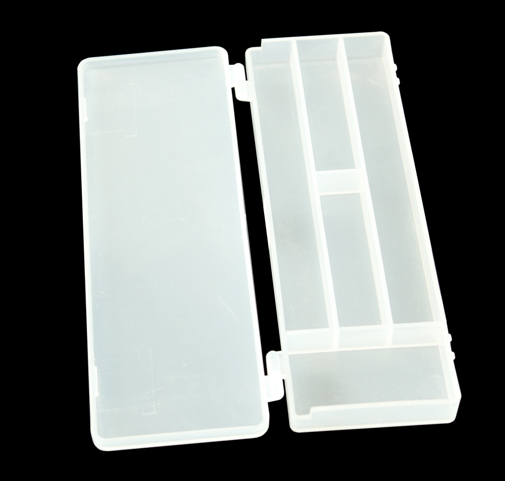 1) 材料:透明PP 2) 柔韧的铰链设计,易于打开与保存 3) 有可移动的间隔,大小组合可以不同 4) 折叠时可以节省空间的设计 5) 广泛用于电子元件,药丸,以及鱼钩 鱼饵的存储等行业