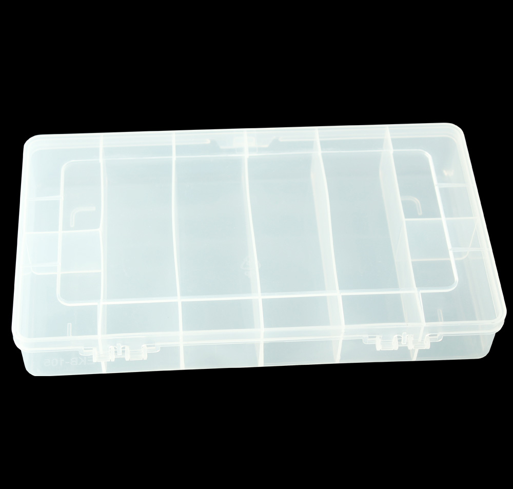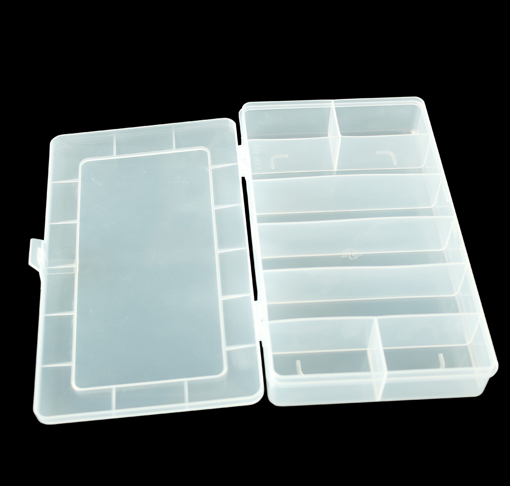 1) 材料:透明PP 2) 柔韧的铰链设计,易于打开与保存 3) 有可移动的间隔,大小组合可以不同 4) 折叠时可以节省空间的设计 5) 广泛用于电子元件,药丸,以及鱼钩 鱼饵的存储等行业