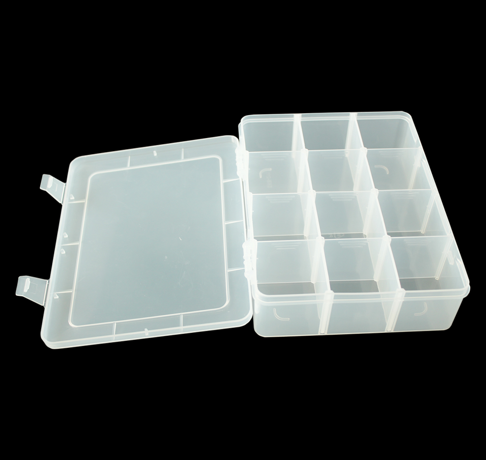 1) 材料:透明PP 2) 柔韧的铰链设计,易于打开与保存 3) 有可移动的间隔,大小组合可以不同 4) 折叠时可以节省空间的设计 5) 广泛用于电子元件,药丸,以及鱼钩 鱼饵的存储等行业