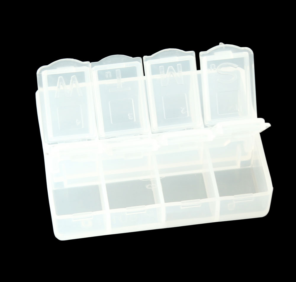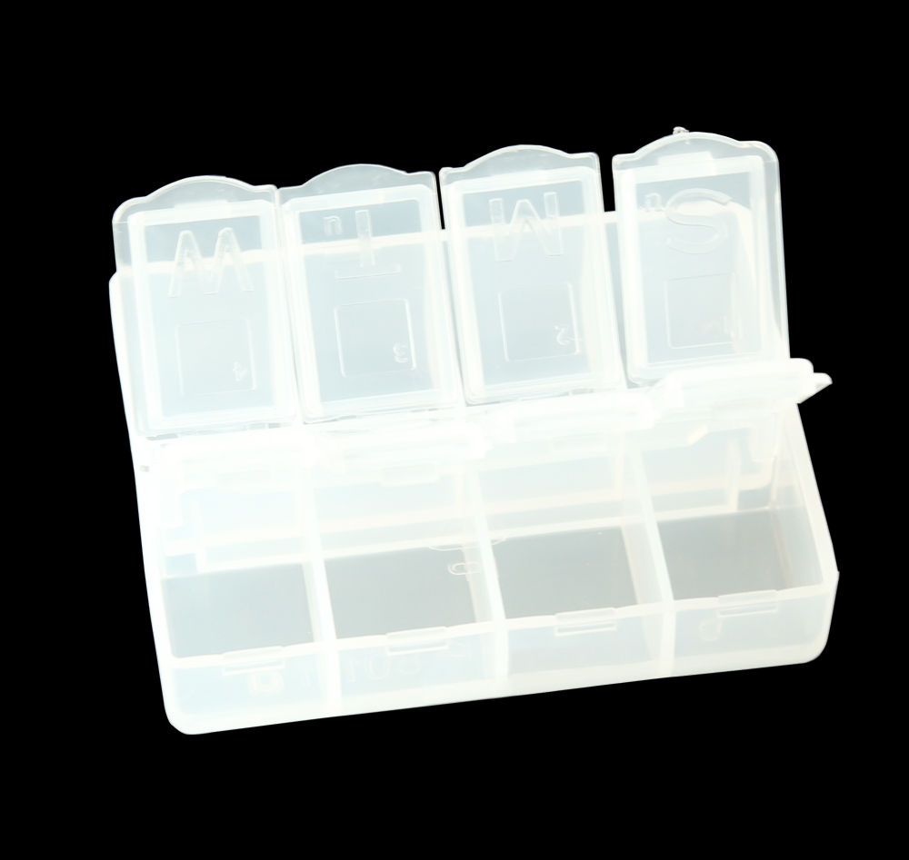 1) 材料:透明PP 2) 柔韧的铰链设计,易于打开与保存 3) 有可移动的间隔,大小组合可以不同 4) 折叠时可以节省空间的设计 5) 广泛用于电子元件,药丸,以及鱼钩 鱼饵的存储等行业