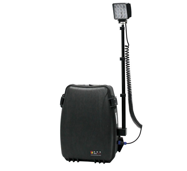 犀牛移动照明灯LIG1919配有人体工程学背负系统,可以在野外崎岖的地形上背在肩上携带。电量指示系统可以计算和指示剩余电池电量,用户可以方便的调节三挡光线强度,选择所需的亮度和运行时间,在危险或意外发生时,可以进行SOS闪烁求救或警告。