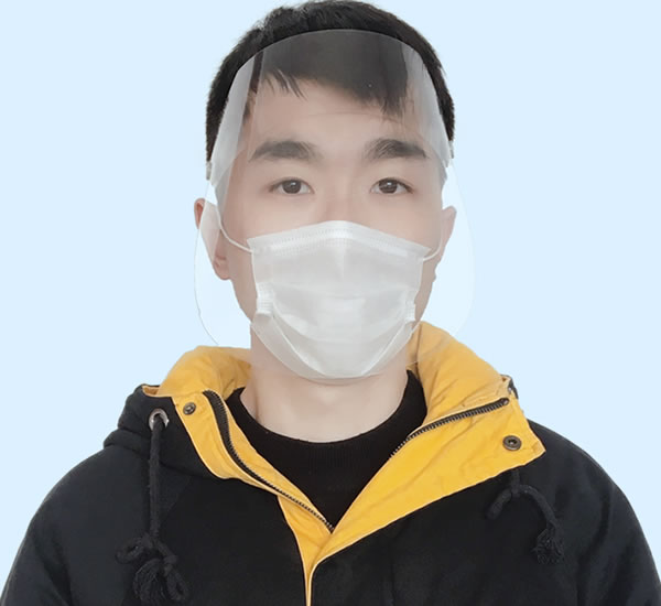 面屏由高清透明PET材质和松紧带组成,可调节包围式,可防止飞沫、粉尘、固体颗粒等飞溅物。可上下调节,酒精水洗消毒后重复使用,清晰防雾。 适用于医院、执勤站岗、NCP调查等多种场合。