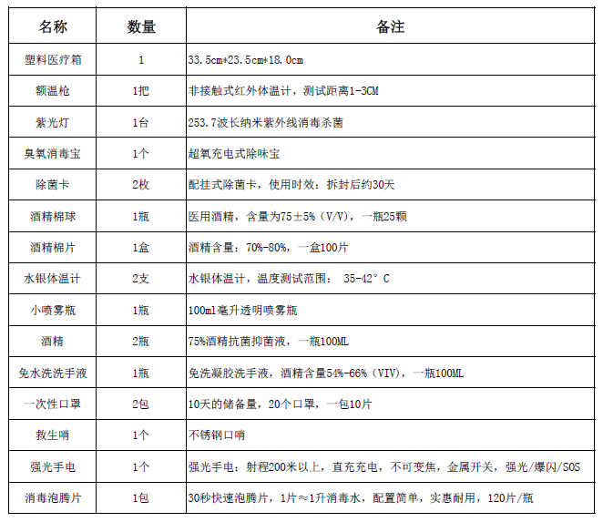 整合了大部分常规使用的防疫物资,