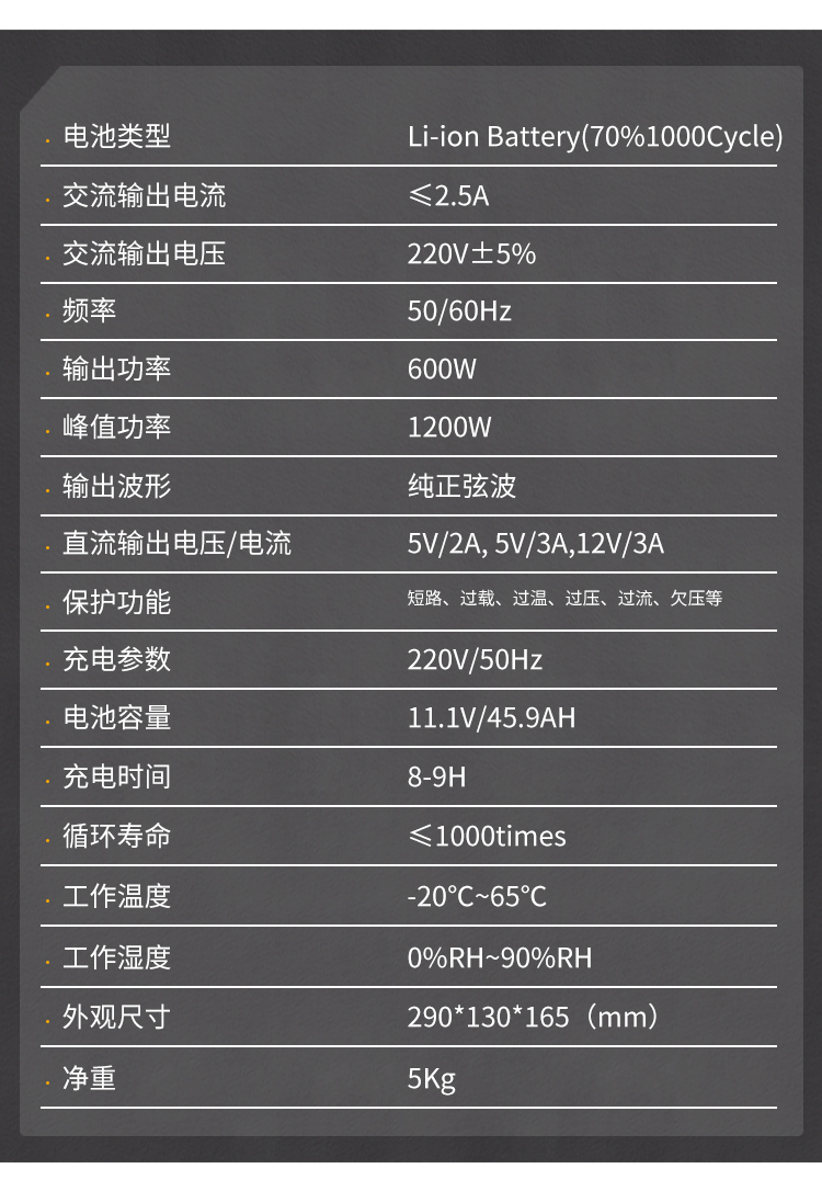 输出功率:600W